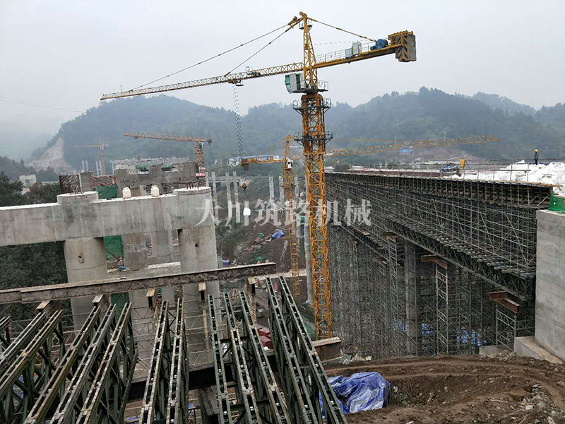 特點(diǎn):現(xiàn)澆梁支架平臺的跨度大,高度高,使用的貝雷片數(shù)量達(dá)到1808片,加強(qiáng)弦桿2800根,工程于2017年9月開始施工。